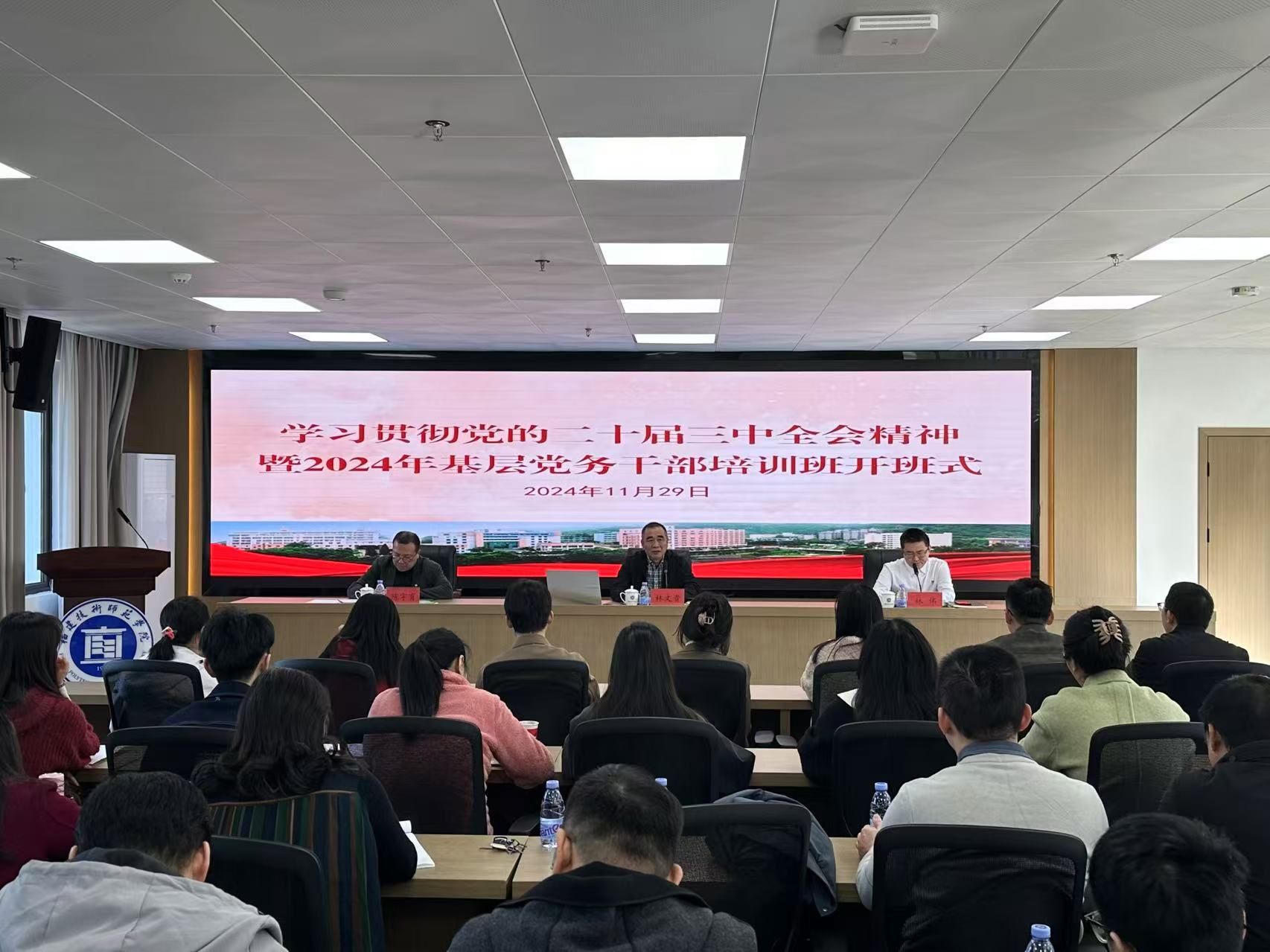 11月29日下午,学校学习贯彻党的二十届三中全会精神暨2024年基层党务干部培训班在林联兴楼集贤厅开班。各二级学院党委组织员,教师党支部书记和学生党支部书记代表,各党总支、机关各支部党务工作者代表参加学习活动。校党委组织部部长林文贵出席开班仪式并讲话,会议由校党委组织部副部长陈宇育主持。