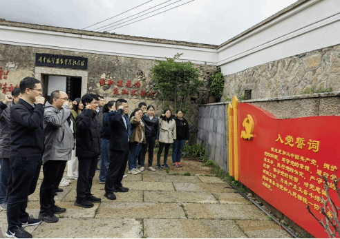 (二)开展行走教育。党支部立足地方红色资源,用红色文化涤荡心灵,以“不忘初心·缅怀先烈·担当使命”为主题,组织教工党员赴福清南岭红色遗址开展集中学习。教职工党员现场学习习近平总书记在主题教育工作会议上的重要讲话精神,边走边看边学,了解红色斗争历史,重温入党誓词,切身感悟思想伟力,在思想上接受了一次政治洗礼,坚定了支部党员做好教书育人各项工作的责任感和使命感。